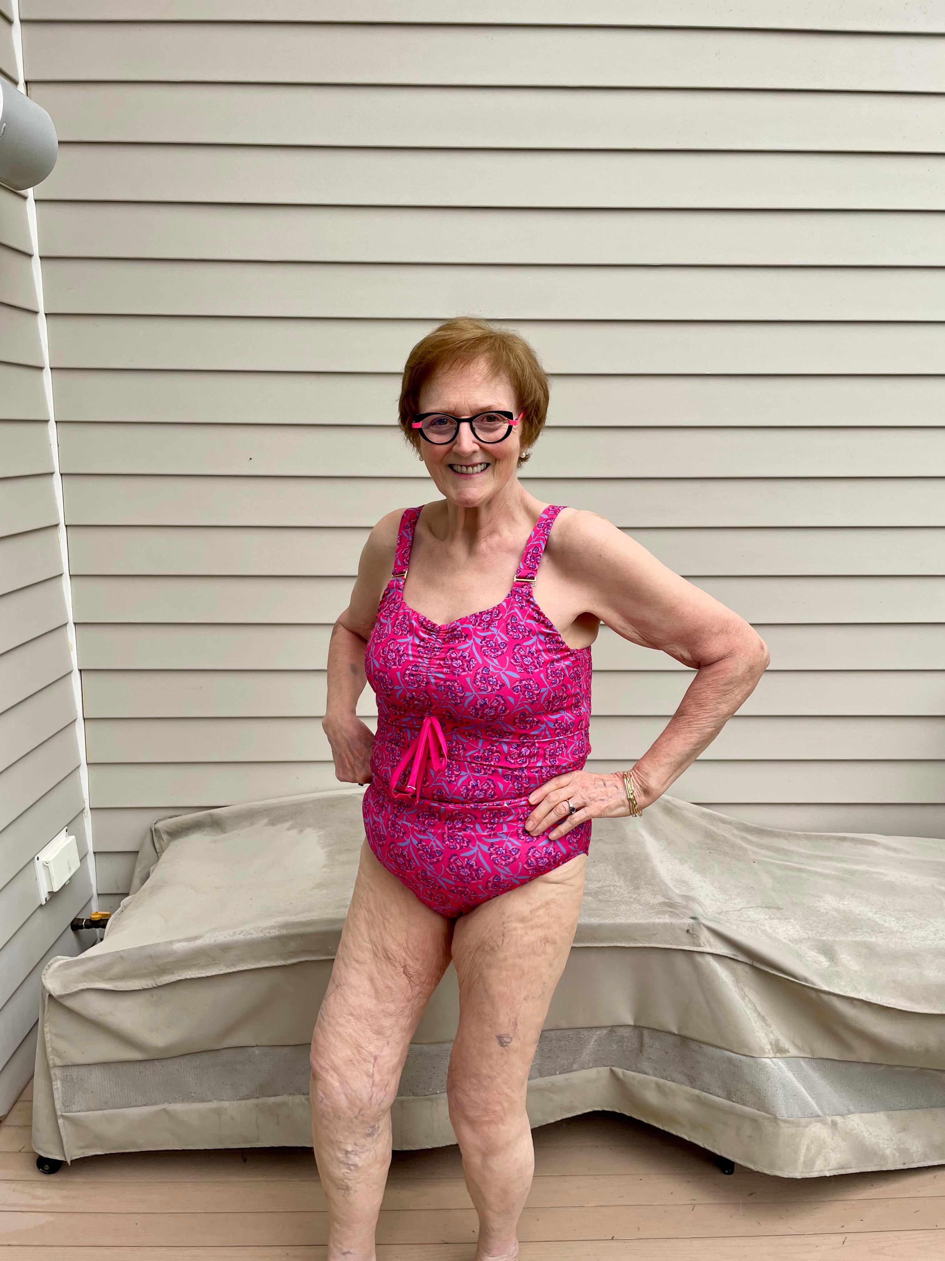 She's wearing our Novanista All-In-One bathing suit in Hydrangea. XL top, middle, and bottom.